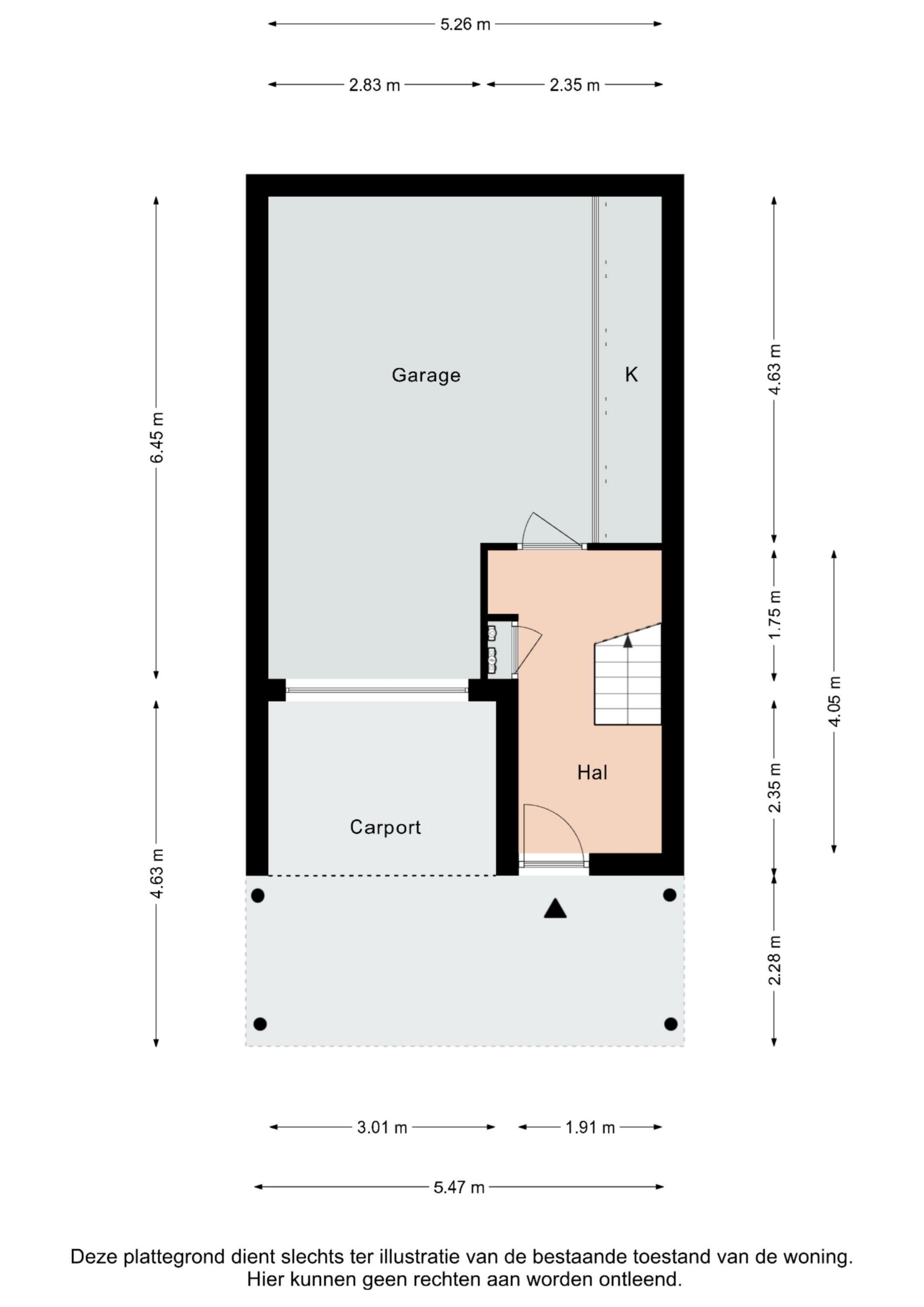 Overdekte entree. Hal voorzien van laminaatvloer met garderobe en meterkast.